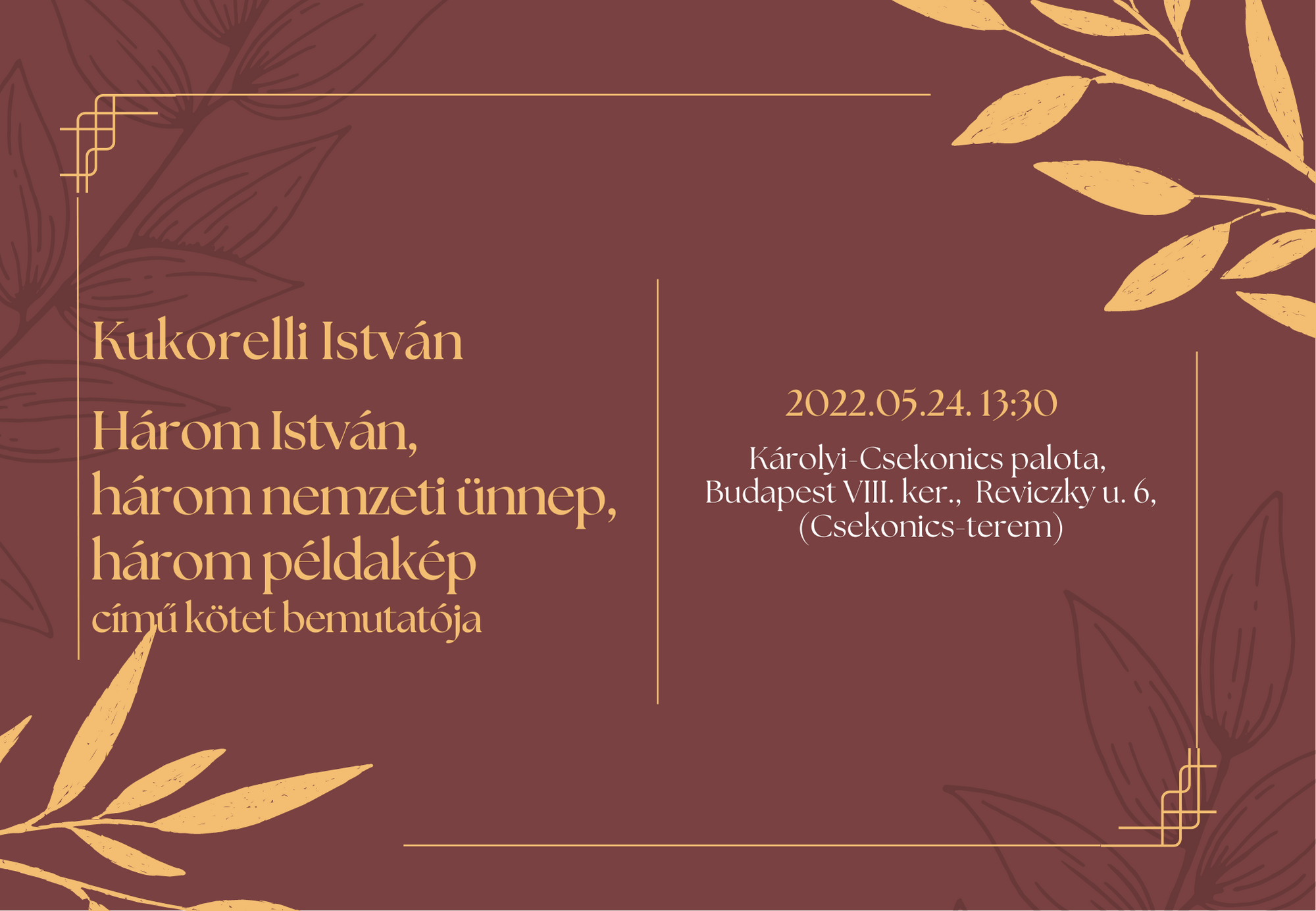 A Károli Gáspár Református Egyetem Állam- és Jogtudományi Karának szervezésében ismét konferenciára kerül sor. Bemutatjuk Kukorelli István: Három István, három nemzeti ünnep, három példakép című kötetét. Az eseményt Prof. Dr. Rixer Ádám a Közigazgatási Jogi Tanszékének vezetője szervezi.